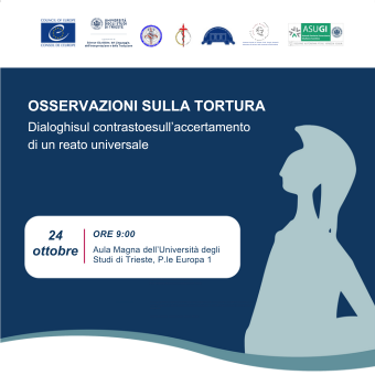 Il 24 ottobre 2025 presso l'aula Magna dell'Ateneo si terrà un congresso organizzato dal Dipartimento di Scienze Giuridiche e dal Dipartimento di Scienze Mediche dell'Università di Trieste, dal titolo "Osservazioni sulla tortura. Dialoghi sul contrasto e sull'accertamento di un reato universale". Gli organizzatori, prof. Stefano Ciampi e prof. Stefano D'Errico (Direttore della SC UCO di Medicina Legale dell'ASUGI) hanno il piacere di invitare tutto il personale di ASUGI interessato all'evento che affronterà i profili giuridici e medico-legali legati all'accertamento del reato di tortura, così come recentemente introdotto nel Codice Penale all'art. 613-bis. Il Presidente della Commissione Europea per la Prevenzione della tortura, Dott. Alan Mitchell, che terrà una lectio magistralis aprirà la giornata congressuale con una lectio magistralis dedicata allo stato dell'arte in Europa, cui seguirà una sessione giuridica in cui spiccano gli interventi del Presidente della Direzione Nazionale Antimafia, Dott. Eugenio Albamonte e del Dott. Giovanni Maria Pavarin, già Garante dei diritti dei detenuti per la provincia di Trento che affronterà il tema dell'uso della forza in carcere.